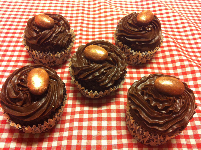 Chocolate cupcakes with Caramel fill topped with Ganache