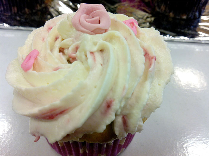 Vanilla Cupcakes with Frozen Raspberries with a Cream Raspberry Frosting