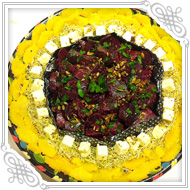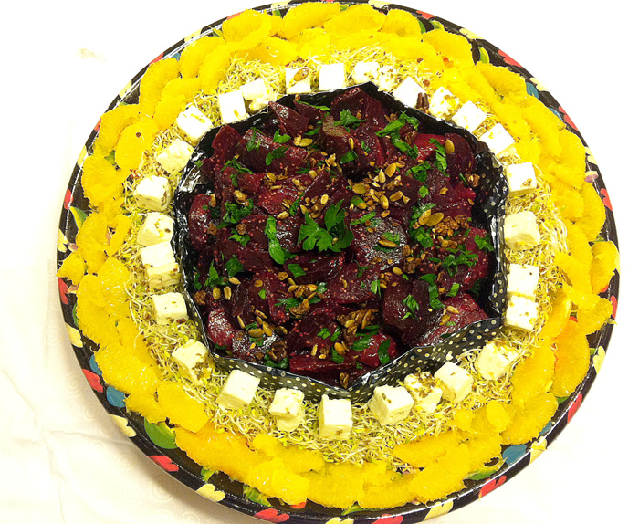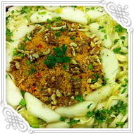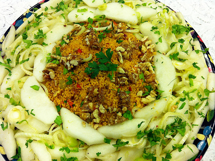 Cous Cous Salad with pear, fennel & walnuts with a walnut dressing |